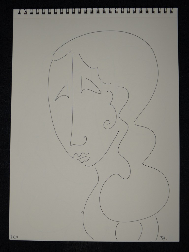33 – Woman with No Earring (2020) – Pen Drawing on 9×12 Drawing Paper 33 the Artist © 2020 Share this: Share on X (Opens in new window) X Share on Facebook (Opens in new window) Facebook Like Loading... Related