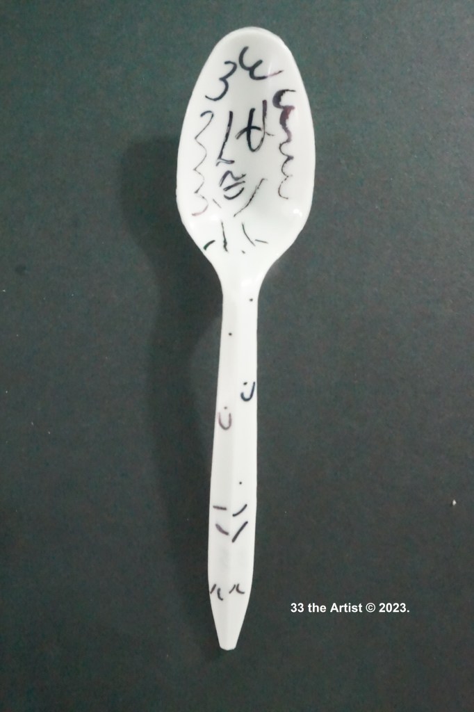 33 – Spoonly II (2023) – Marker on Cutlery 33 the Artist © 2023. All Rights Reserved. Share this: Share on X (Opens in new window) X Share on Facebook (Opens in new window) Facebook Like Loading... Related