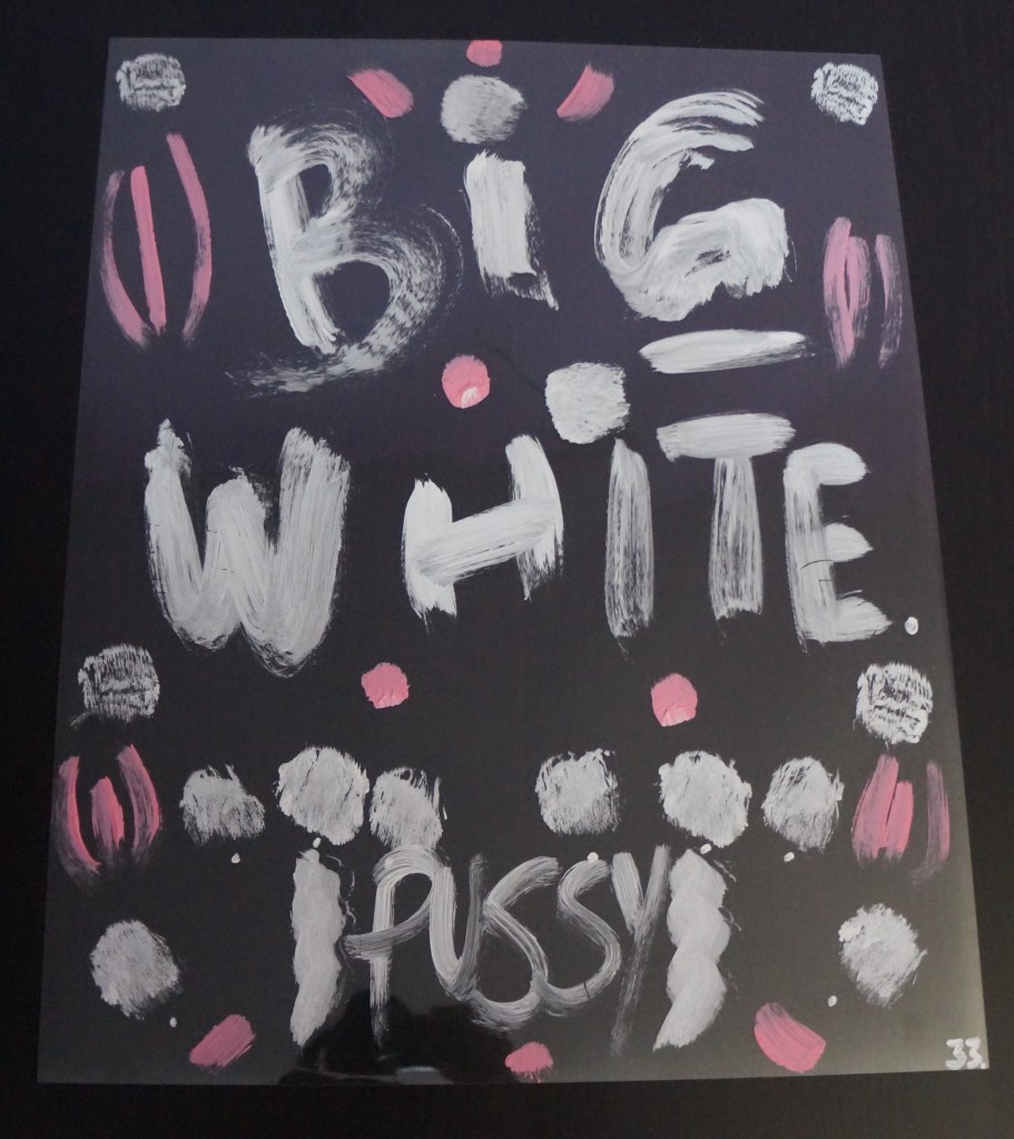 33 – Big White Pussy (2025) – Acrylic on 16×20 Plastic Paper 33 the Artist © 2025. All Rights Reserved. Share this: Click to share on X (Opens in new window) X Click to share on Facebook (Opens in new window) Facebook Like Loading... Related