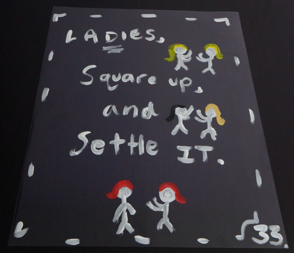 33 – Ladies, Square up, and Settle It. (2026) – Acrylic on 16×20 Plastic Paper 33 the Artist © 2026. All Rights Reserved. Share this: Share on X (Opens in new window) X Share on Facebook (Opens in new window) Facebook Like Loading... Related