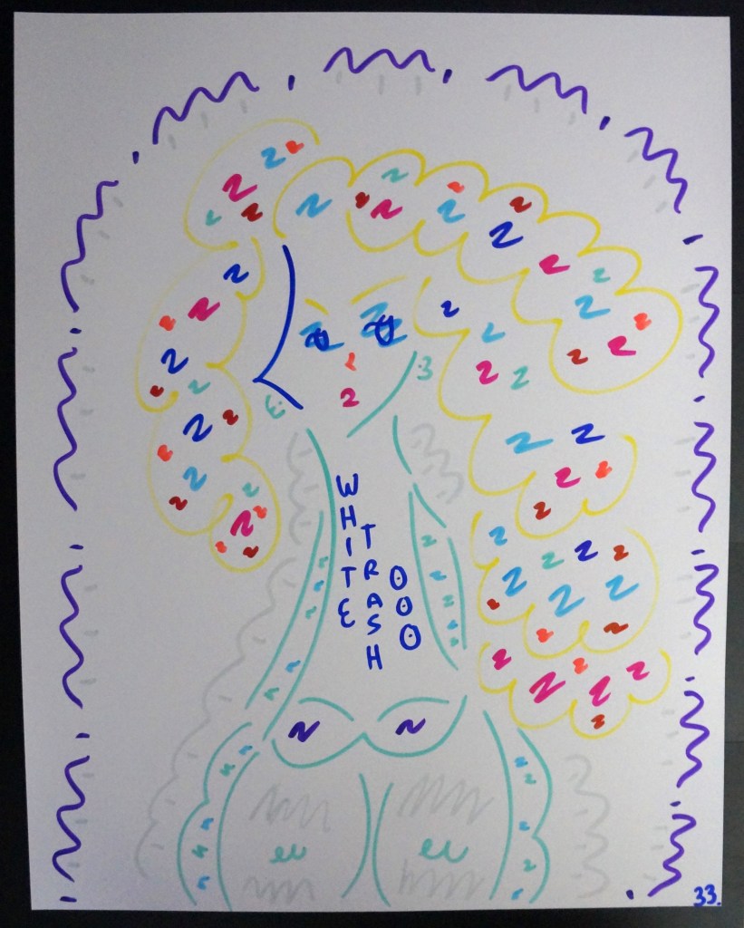 33 – White Trash IX (2026) – Marker on 22×28 Bristol Board 33 the Artist © 2026. All Rights Reserved. Share this: Share on X (Opens in new window) X Share on Facebook (Opens in new window) Facebook Like Loading... Related