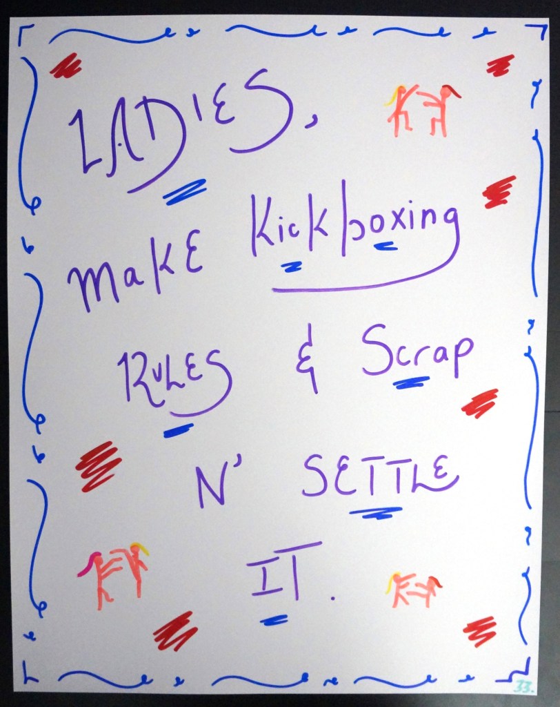 33 – Ladies, Make Kickboxing Rules & Scarp N’ Settle It. (2026) – Marker on 22×28 Bristol Board 33 the Artist © 2026. All Rights Reserved. Share this: Share on X (Opens in new window) X Share on Facebook (Opens in new window) Facebook Like Loading... Related