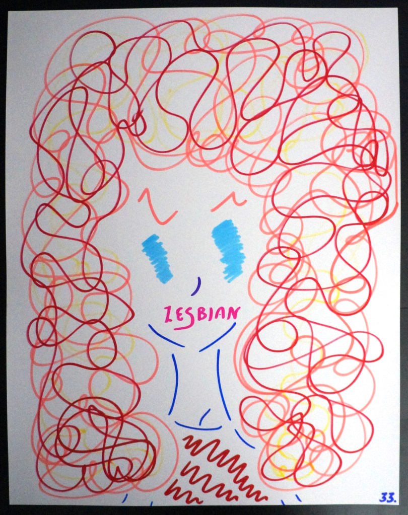 33 – Lesbian (2026) – Marker on 22×28 Bristol Board 33 the Artist © 2026. All Rights Reserved. Share this: Share on X (Opens in new window) X Share on Facebook (Opens in new window) Facebook Like Loading... Related