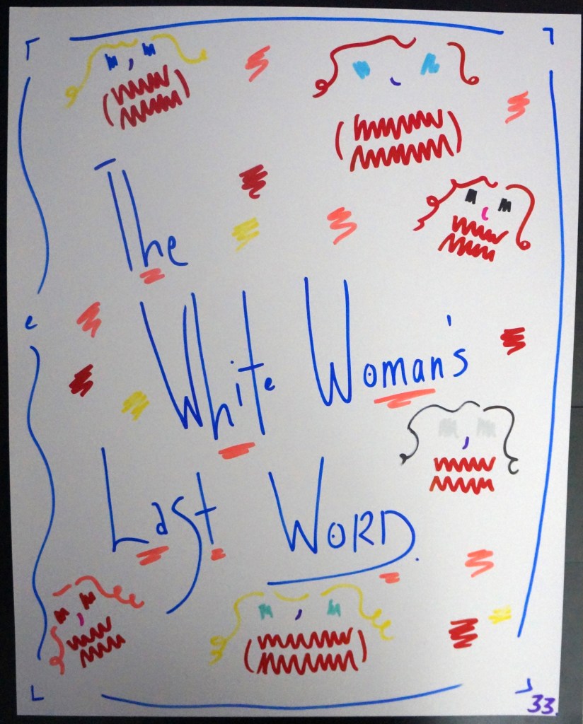33 – The White Woman’s Last Word. (2026) – Marker on 22×28 Bristol Board 33 the Artist © 2026. All Rights Reserved. Share this: Share on X (Opens in new window) X Share on Facebook (Opens in new window) Facebook Like Loading... Related