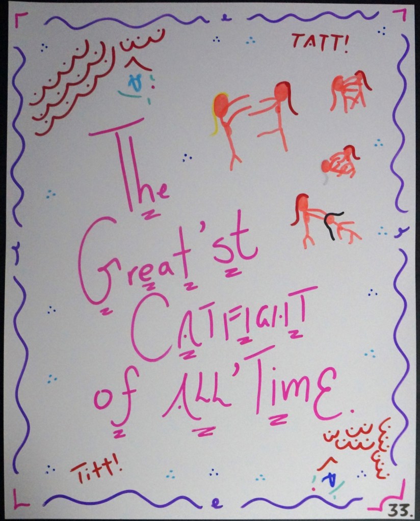 33 – The Great’st Catfight of All’Time. (2026) – Marker on 22×28 Bristol Board 33 the Artist © 2015 – Present. All Rights Reserved. Share this: Share on X (Opens in new window) X Share on Facebook (Opens in new window) Facebook Like Loading... Related