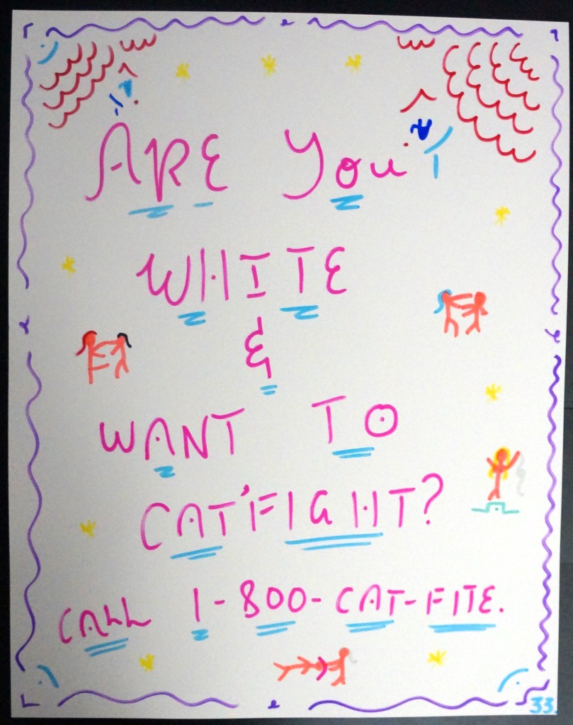 33 – Are You White & Want To Catfight? Call 1-800-CAT-FITE (2026) – Marker on 22×28 Bristol Board 33 the Artist © 2015 – Present. All Rights Reserved. Share this: Share on X (Opens in new window) X Share on Facebook (Opens in new window) Facebook Like Loading... Related
