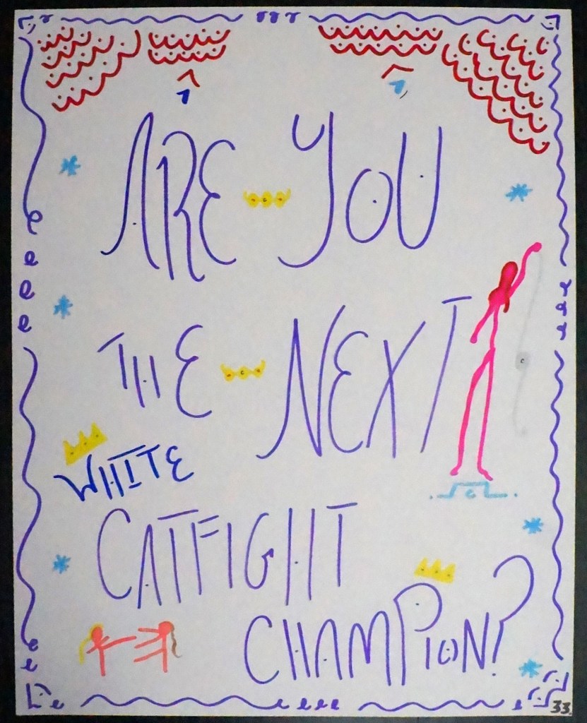 33 – Are You The Next White Catfight Champion? (2026) – Marker on 22×28 Bristol Board 33 the Artist © 2015 – Present. All Rights Reserved. Share this: Share on X (Opens in new window) X Share on Facebook (Opens in new window) Facebook Like Loading... Related