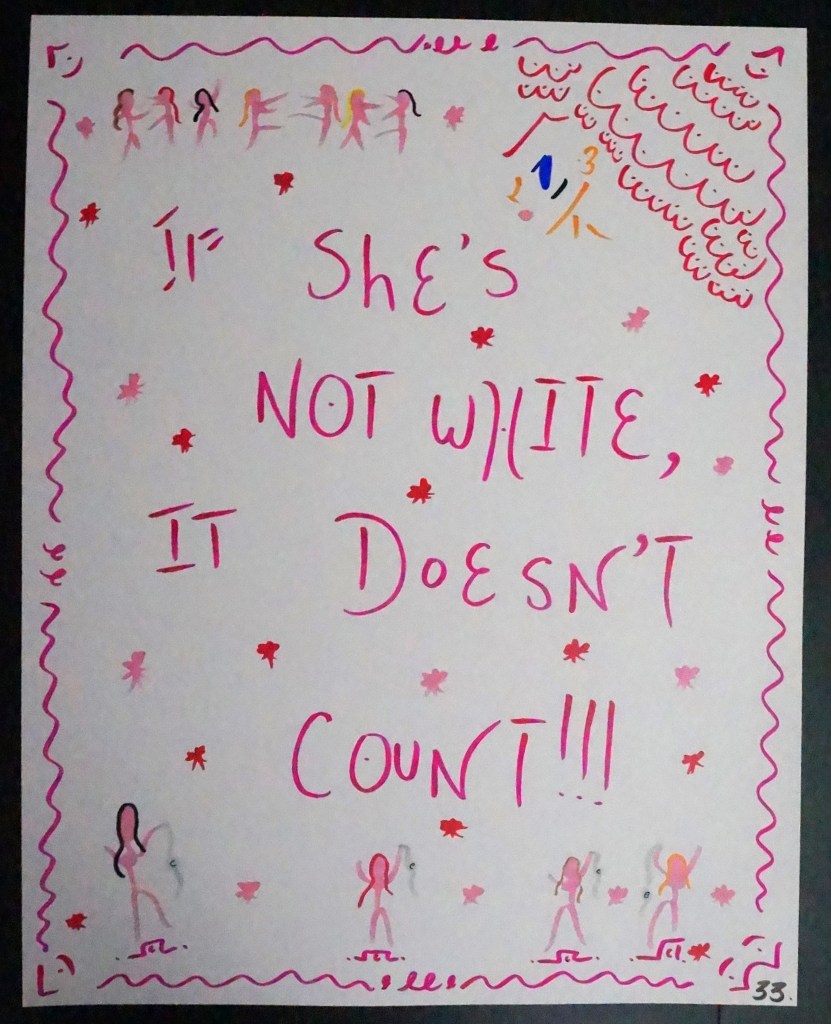 33 – If She’s Not White, It Doesn’t Count!!!(2026) – Marker on 22×28 Bristol Board 33 the Artist © 2015 – Present. All Rights Reserved. Share this: Share on X (Opens in new window) X Share on Facebook (Opens in new window) Facebook Like Loading... Related