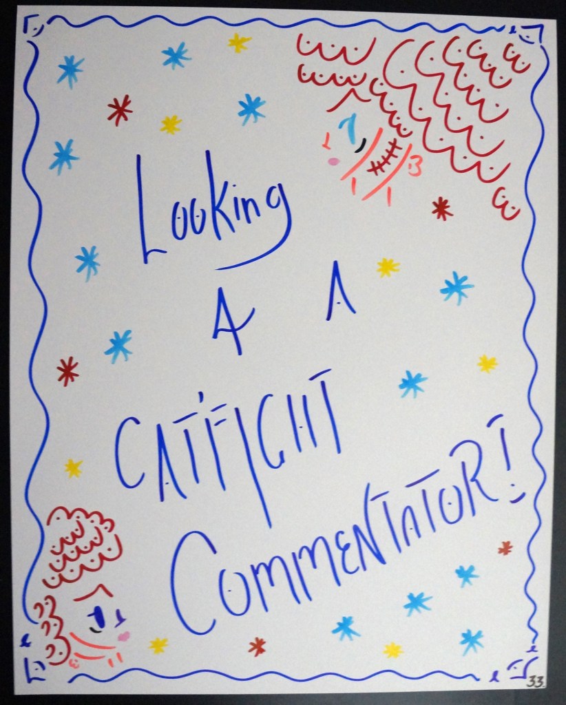 33 – Looking 4 A Cat’fight Commentator! (2026) – Marker on 22×28 Bristol Board 33 the Artist © 2015 – Present. All Rights Reserved. Share this: Share on X (Opens in new window) X Share on Facebook (Opens in new window) Facebook Like Loading... Related