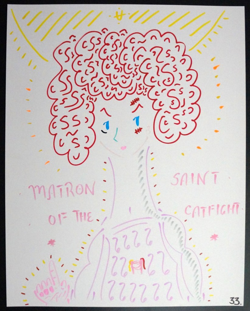 33 – Matron Saint of the Catfight (2026) – Marker on 22×28 Bristol Board 33 the Artist © 2015 – Present. All Rights Reserved. Share this: Share on X (Opens in new window) X Share on Facebook (Opens in new window) Facebook Like Loading... Related