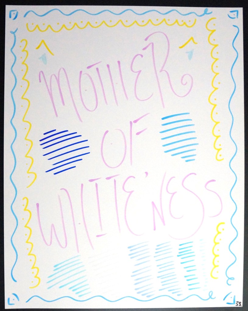33 – Mother of White’ness (2026) – Marker on 22×28 Bristol Board 33 the Artist © 2015 – Present. All Rights Reserved. Share this: Share on X (Opens in new window) X Share on Facebook (Opens in new window) Facebook Like Loading... Related