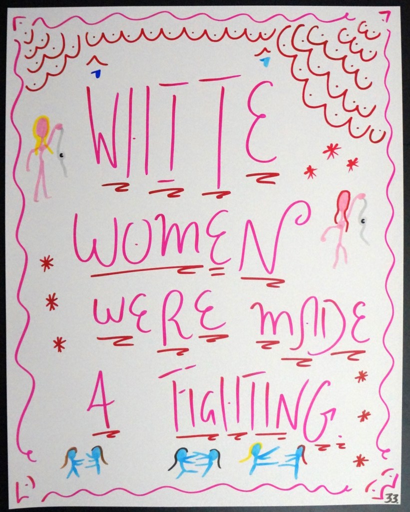 33 – White Women Were Made 4 Fighting. (2026) – Marker on 22×28 Bristol Board 33 the Artist © 2015 – Present. All Rights Reserved. Share this: Share on X (Opens in new window) X Share on Facebook (Opens in new window) Facebook Like Loading... Related