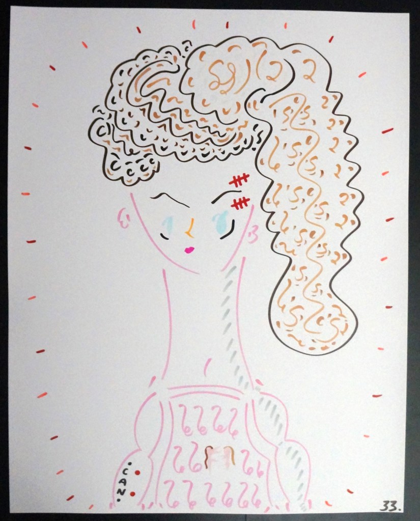 33 – Legendary “White Canadian Deviless, Proud Colonizer, Hard’Head, Top Soldier, Macho’Macho, Small Engine Mechanic, Pick Up Drivin’, Anglo Psychopath, Ultra-Violentess, Serial Killeress ” Canadian Catfight Champion (2026) – Marker on 22×28 Bristol Board