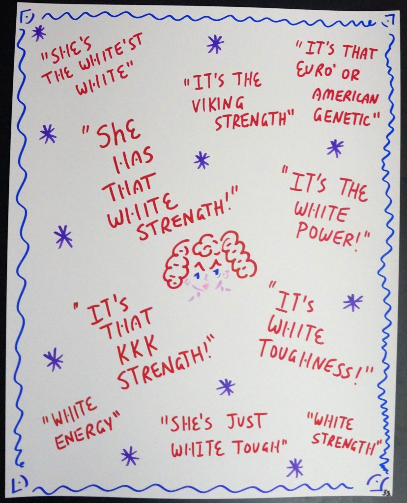 33 – Legendary Catfight Sayings, About the White’st White American Catfighter (2026) – Marker on 22×28 Bristol Board 33 the Artist © 2015 – Present. All Rights Reserved. Share this: Share on X (Opens in new window) X Share on Facebook (Opens in new window) Facebook Like Loading... Related