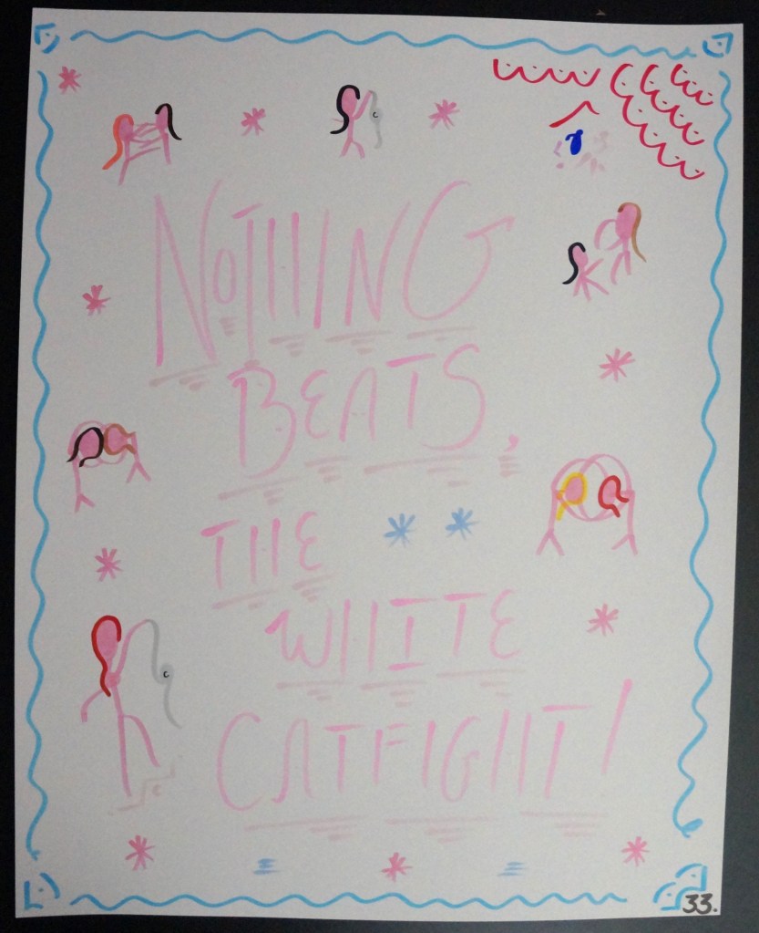 33 – Nothing Beats, The White Catfight! (2026) – Marker on 22×28 Bristol Board 33 the Artist © 2015 – Present. All Rights Reserved. Share this: Share on X (Opens in new window) X Share on Facebook (Opens in new window) Facebook Like Loading... Related