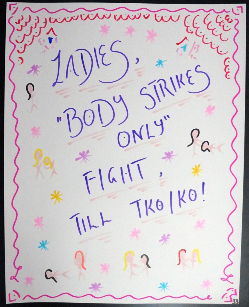 33 – Ladies, “Body Strikes Only” Fight, Till TKO/KO! (2026) – Marker on 22×28 Bristol Board 33 the Artist © 2015 – Present. All Rights Reserved. Share this: Share on X (Opens in new window) X Share on Facebook (Opens in new window) Facebook Like Loading... Related