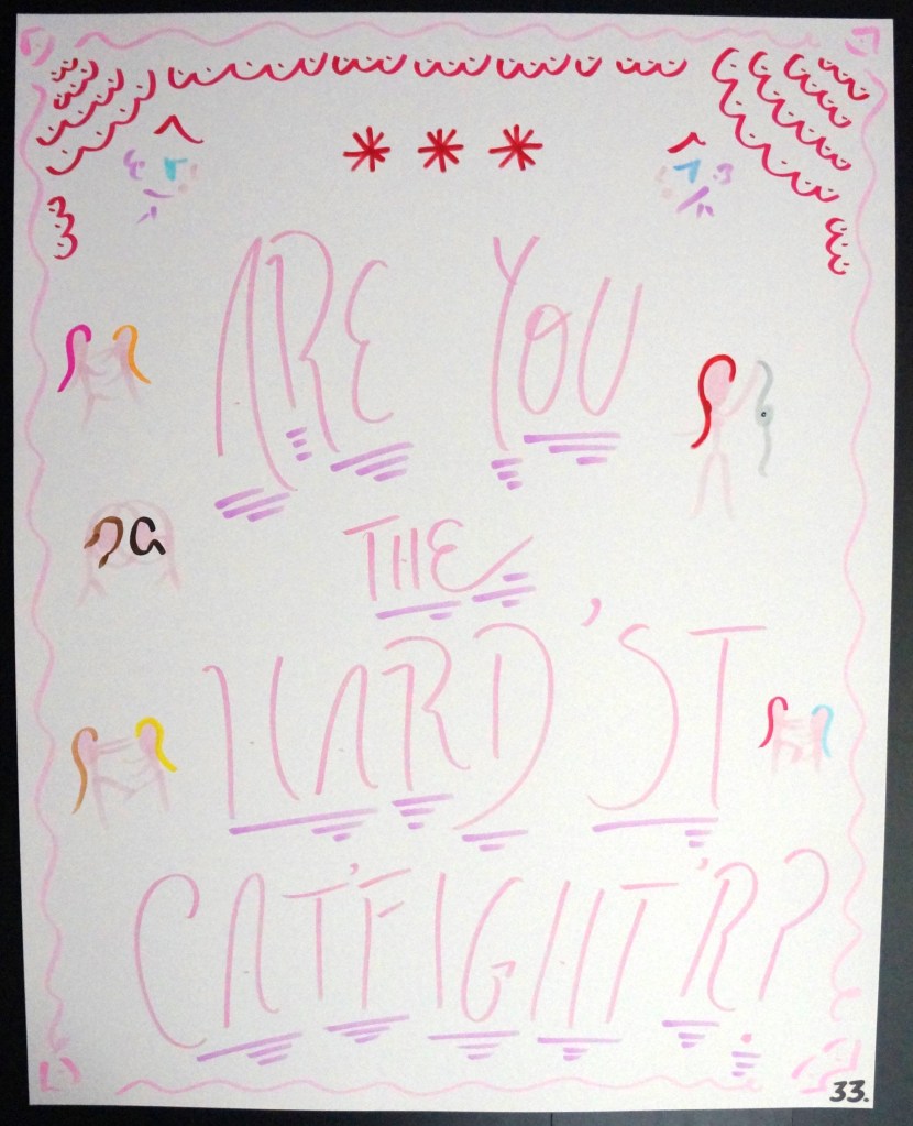 33 – Are You The Hard’st Cat’fight’r? (2026) – Marker on 22×28 Bristol Board 33 the Artist © 2015 – Present. All Rights Reserved. Share this: Share on X (Opens in new window) X Share on Facebook (Opens in new window) Facebook Like Loading... Related