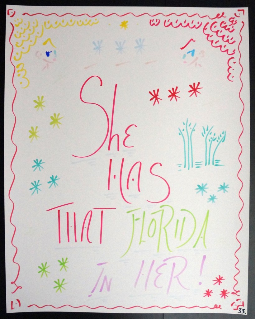 33 – She Has That Florida In Her! (2026) – Marker on 22×28 Bristol Board 33 the Artist © 2015 – Present. All Rights Reserved. Share this: Share on X (Opens in new window) X Share on Facebook (Opens in new window) Facebook Like Loading... Related