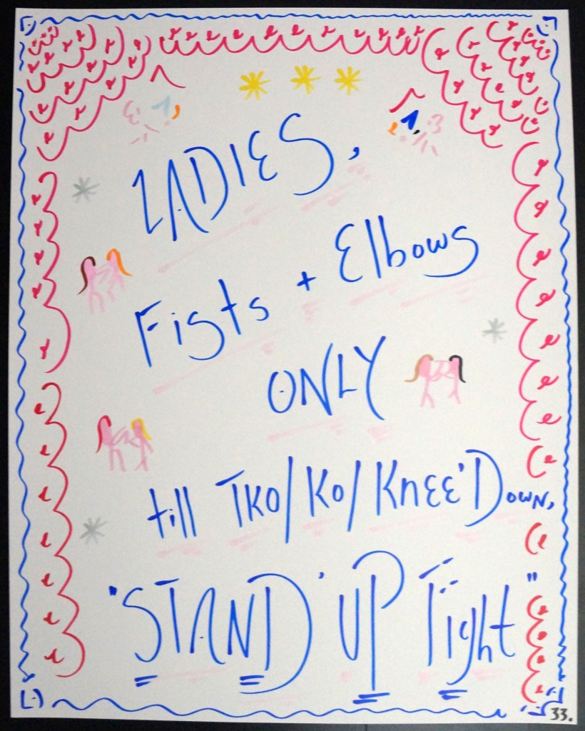 33 – Ladies, Fists + Elbows Only Till TKO/KO/Knee’Down, “Stand’Up Fight” (2026) – Marker on 22×28 Bristol Board 33 the Artist © 2015 – Present. All Rights Reserved. Share this: Share on X (Opens in new window) X Share on Facebook (Opens in new window) Facebook Like Loading... Related