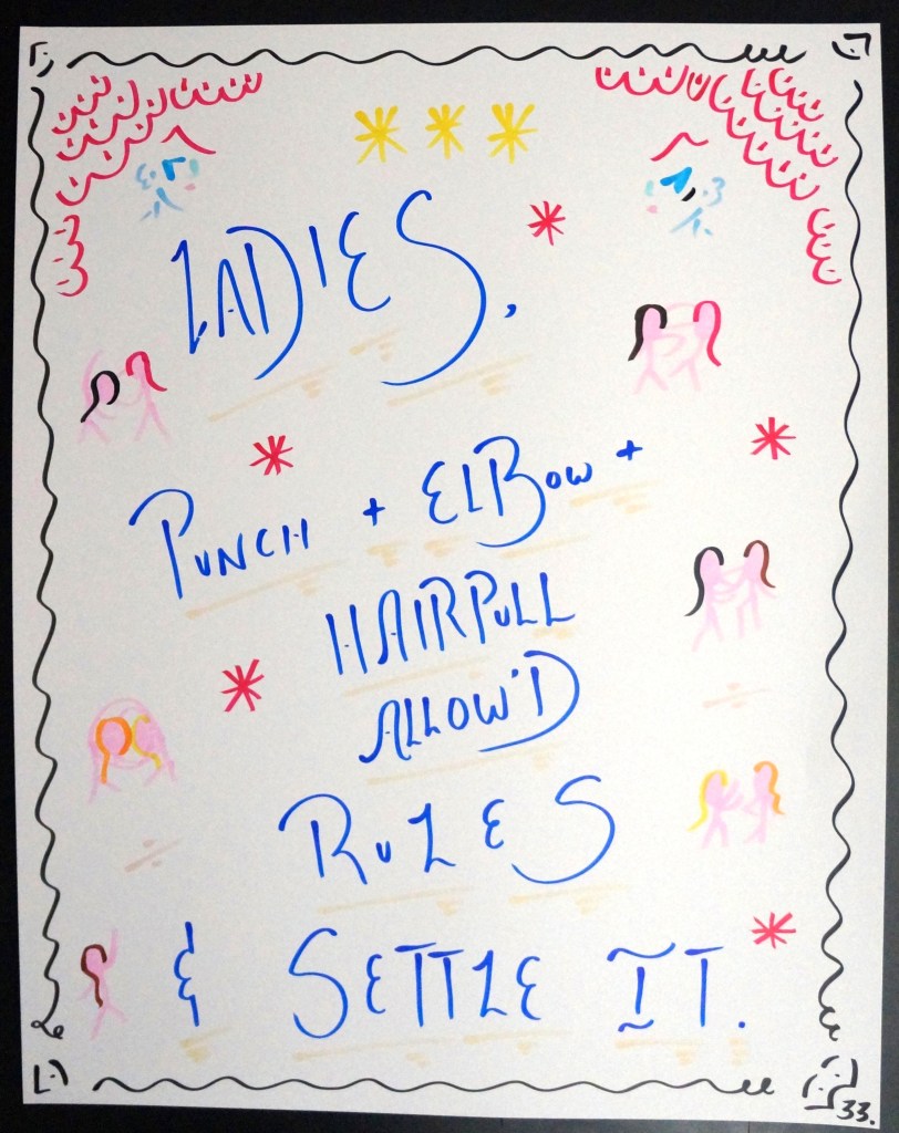 33 – Ladies, Punch + Elbow + Hairpull Allow’d Rules & Settle It. (2026) – Marker on 22×28 Bristol Board 33 the Artist © 2015 – Present. All Rights Reserved. Share this: Share on X (Opens in new window) X Share on Facebook (Opens in new window) Facebook Like Loading... Related