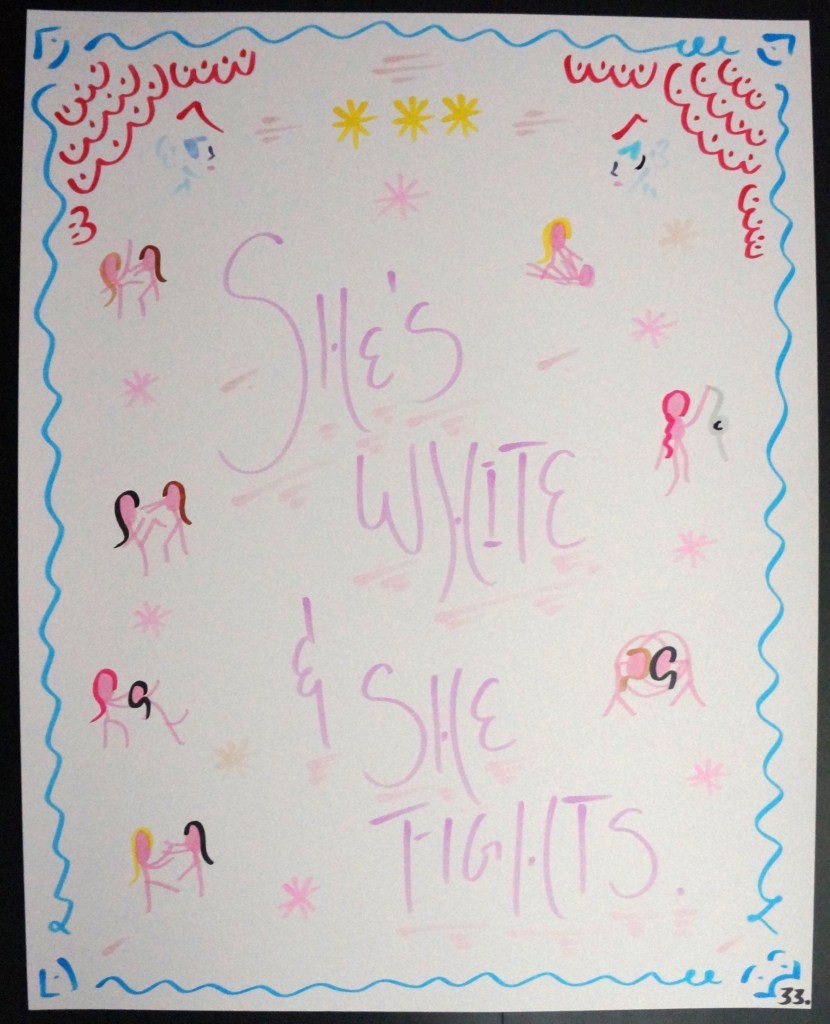 33 – She’s White & She Fights. (2026) – Marker on 22×28 Bristol Board 33 the Artist © 2015 – Present. All Rights Reserved. Share this: Share on X (Opens in new window) X Share on Facebook (Opens in new window) Facebook Like Loading... Related