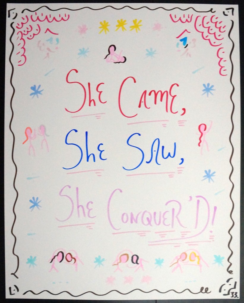 33 – She Came, She Saw, She Conquer’d! (2026) – Marker on 22×28 Bristol Board 33 the Artist © 2015 – Present. All Rights Reserved. Share this: Share on X (Opens in new window) X Share on Facebook (Opens in new window) Facebook Like Loading... Related