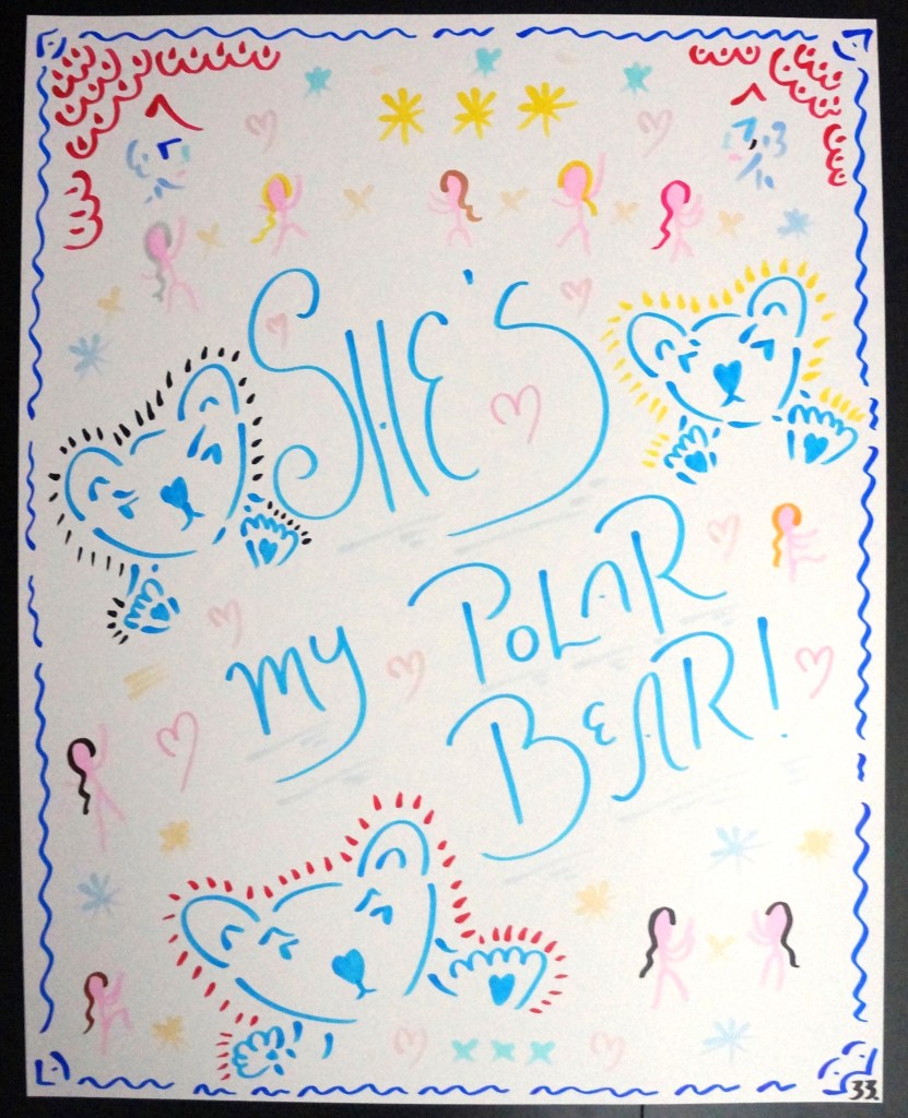 33 – She’s My Polar Bear! (2026) – Marker on 22×28 Bristol Board 33 the Artist © 2015 – Present. All Rights Reserved. Share this: Share on X (Opens in new window) X Share on Facebook (Opens in new window) Facebook Like Loading... Related