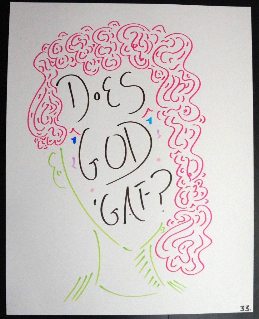 33 – Does God ‘GAF? (2026) – Marker on 22×28 Bristol Board 33 the Artist © 2015 – Present. All Rights Reserved. Share this: Share on X (Opens in new window) X Share on Facebook (Opens in new window) Facebook Like Loading... Related