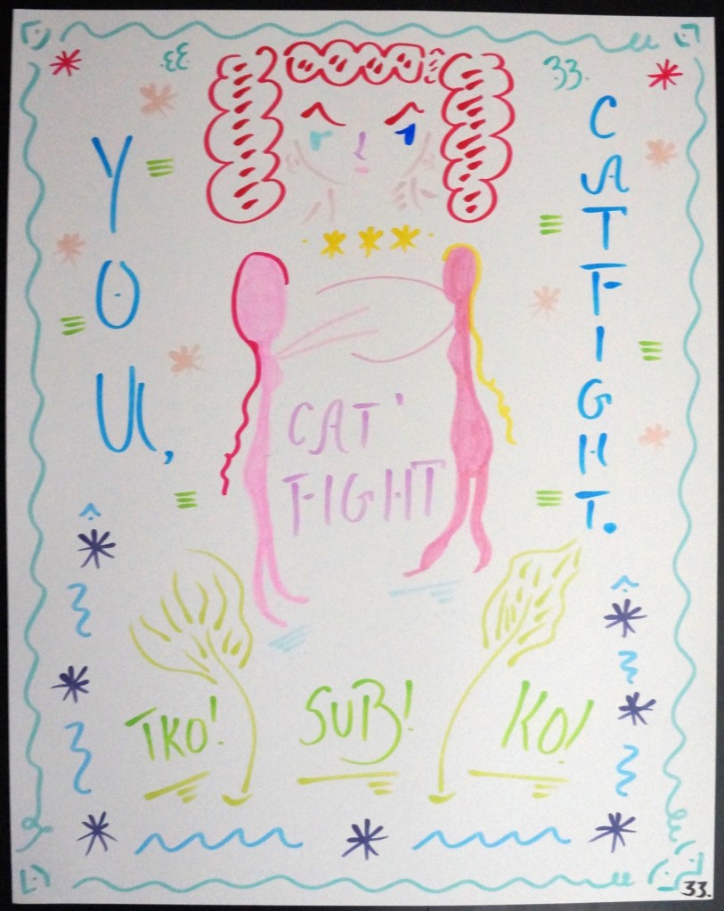 33 – You, Catfight. (2026) – Marker on 22×28 Bristol Board 33 the Artist © 2015 – Present. All Rights Reserved. Share this: Share on X (Opens in new window) X Share on Facebook (Opens in new window) Facebook Like Loading... Related