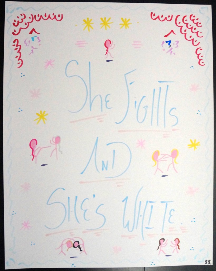 33 – She Fights And She’s White. (2026) – Marker on 22×28 Bristol Board 33 the Artist © 2015 – Present. All Rights Reserved. Share this: Share on X (Opens in new window) X Share on Facebook (Opens in new window) Facebook Like Loading... Related