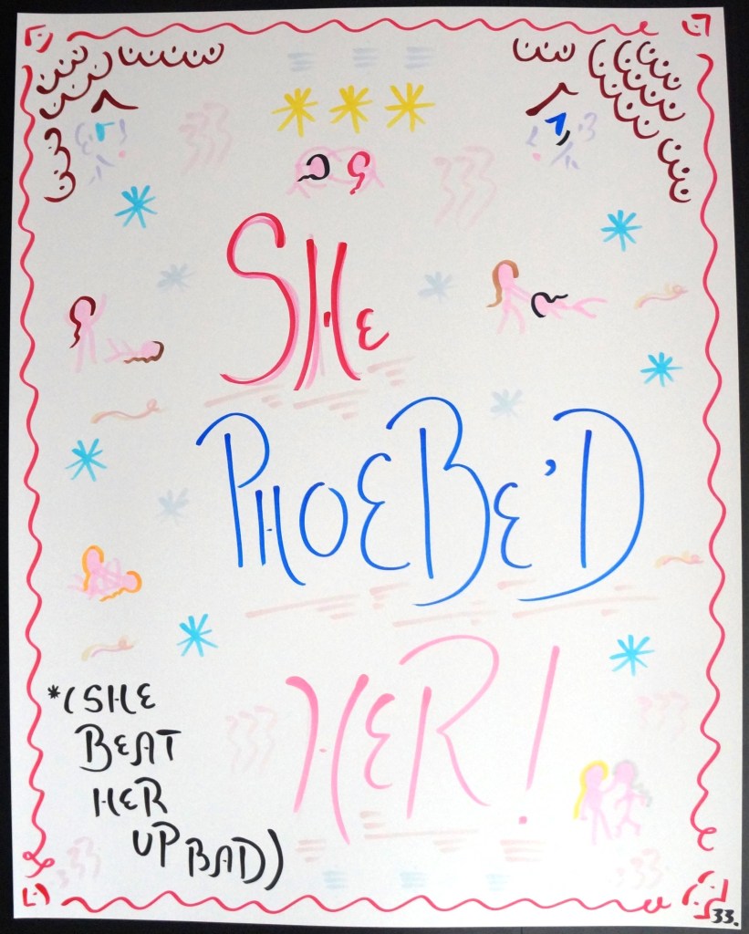 33 – She Phoebe’d Her! (2026) – Marker on 22×28 Bristol Board 33 the Artist © 2015 – Present. All Rights Reserved. Share this: Share on X (Opens in new window) X Share on Facebook (Opens in new window) Facebook Like Loading... Related
