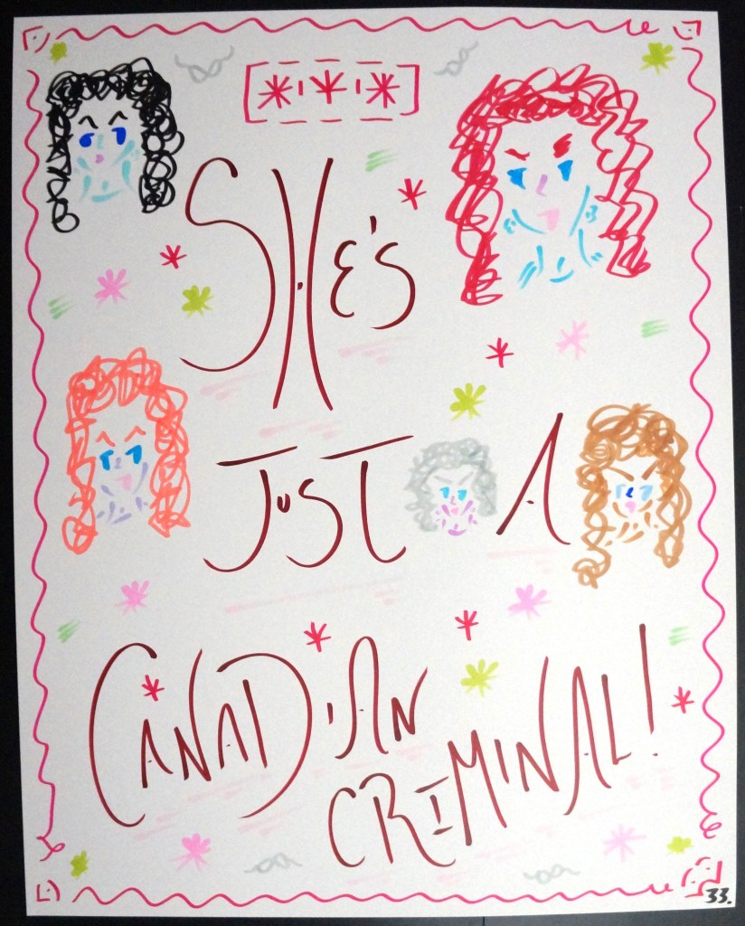 33 – She’s Just A Canadian Criminal! (2026) – Marker on 22×28 Bristol Board 33 the Artist © 2015 – Present. All Rights Reserved. Share this: Share on X (Opens in new window) X Share on Facebook (Opens in new window) Facebook Like Loading... Related