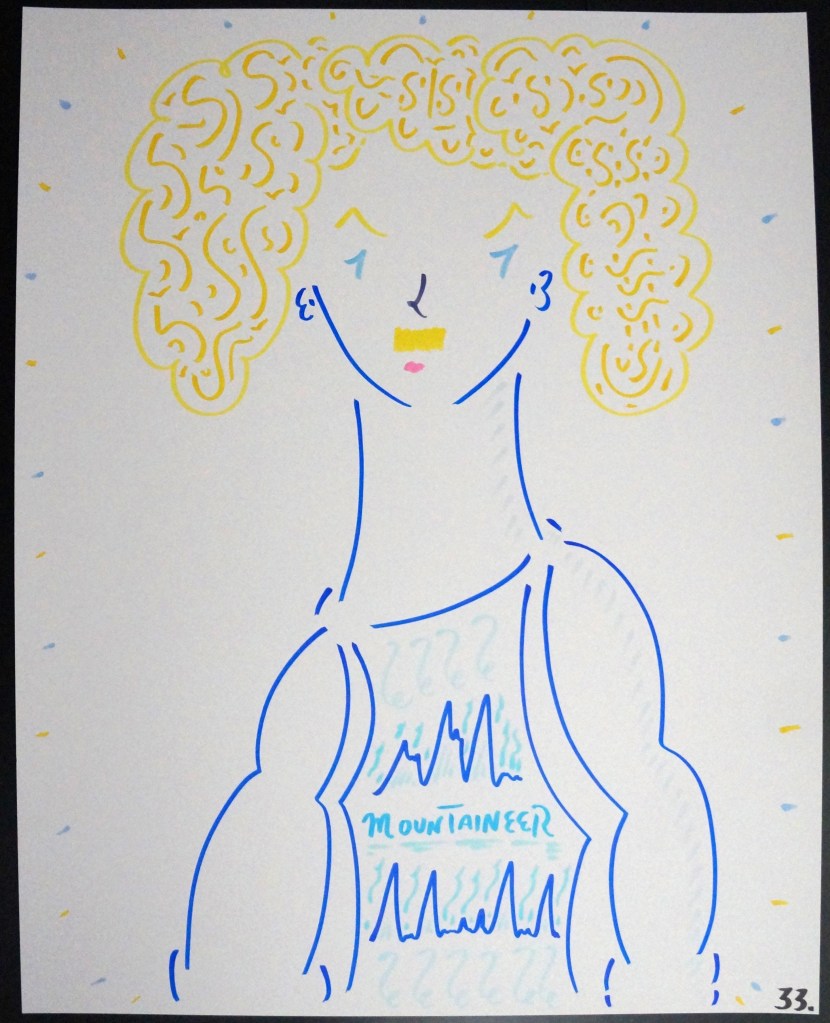 33 – Legendary “Dolph” Mountaineer (2026) – Marker on 22×28 Bristol Board 33 the Artist © 2015 – Present. All Rights Reserved. Share this: Share on X (Opens in new window) X Share on Facebook (Opens in new window) Facebook Like Loading... Related