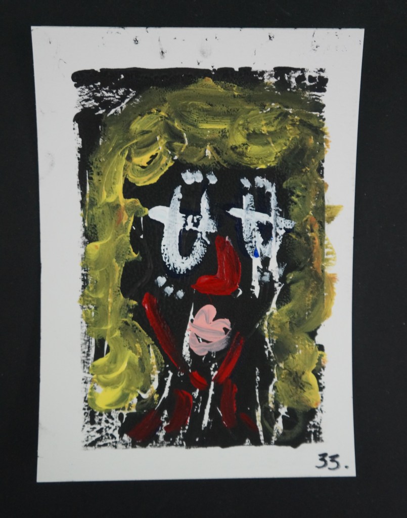 33 – Face Side (2023)– (Ink and Acrylic Paint)33 – Frontly (2023)– (Ink and Acrylic Paint)33 – Beauty Side I (2023)– (Ink and Acrylic Paint)33 – Beauty Side II (2023)– (Ink and Acrylic Paint)33 – Beauty Side III (2023)– (Ink and Acrylic Paint)33 – Front Side (2023)– (Ink and Acrylic Paint)33 – Expera (2023) – (Ink and Acrylic Paint)33 – White Crosses (2023) – (Ink and Acrylic Paint)33 – White Crosses II (2023) – (Ink and Acrylic Paint)33 – Crosses (2023) – (Ink and Acrylic Paint)33 – Triangle Temple (2023) – (Ink and Acrylic Paint)33 – Al’lah (2023) – (Ink and Acrylic Paint)33 – Kite (2023) – (Ink and Acrylic Paint)33 – Ghoul (2023) – (Ink and Acrylic Paint)33 – Cyclops (2023) – (Ink and Acrylic Paint)33 – White Cross (2023) – (Ink and Acrylic Paint)33 – Silver Face (2023) – (Ink and Acrylic Paint)33 – Silver Face II (2023) – (Ink and Acrylic Paint)33 – Silver Face III (2023) – (Ink and Acrylic Paint)33 – Bronze Face (2023) – (Ink and Acrylic Paint)33 – Stiches (2023) – (Ink, Textile Thread and Acrylic Paint)33 – Purple Face (2023) – (Ink and Acrylic Paint)33 – Face’n Abstract (2023) – (Ink and Acrylic Paint)33 – Green Triangle Head (2023) – (Ink and Acrylic Paint)33 – Four Corners (2023) – (Ink and Acrylic Paint)33 – Blonde Hair (2023) – (Ink and Acrylic Paint)33 – Clowny (2023) – (Ink and Acrylic Paint)33 – Greenly Ghoul (2023) – (Ink and Acrylic Paint)33 – Box and Face (2023) – (Ink and Acrylic Paint)33 – Beauty Green (2023) – (Ink and Acrylic Paint)33 – Hiding Green (2023) – (Ink and Acrylic Paint)33 – Blue Strokes (2023) – (Ink and Acrylic Paint)33 – Hashtags (2023) – (Ink and Acrylic Paint)33 – Silver Hair (2023) – (Ink and Acrylic Paint)33 – Light Green Hair (2023) – (Ink and Acrylic Paint)33 – Greenly Yellow Hair and Horns (2023) – (Ink and Acrylic Paint)33 – Master Face (2023) – (Ink and Acrylic Paint)33 – Eyes Through Window (2023) – (Ink and Acrylic Paint)33 – White (2023) – (Ink and Acrylic Paint)33 – Bluey Face (2023) – (Ink and Acrylic Paint)33 – Mr. Cleane (2023) – (Ink and Acrylic Paint)33 – Mr. Cleane II (2023) – (Ink and Acrylic Paint)33 – Beauti (2023) – (Ink and Acrylic Paint)33 – Cyclops Cross (2023) – (Ink and Acrylic Paint)33 – Cross Dance (2023) – (Ink and Acrylic Paint)33 – Sharp Long Nose (2023) – (Ink and Acrylic Paint)33 – Facing U (2023) – (Ink and Acrylic Paint)33 – Facing U II (2023) – (Ink and Acrylic Paint)33 – Facing U III (2023) – (Ink and Acrylic Paint)33 – Facing U IV (2023) – (Ink and Acrylic Paint)33 – Scrappy (2023) –(Ink, White Out Tape, Marker and Acrylic Paint)33 – Quick (2023) – (Ink and Acrylic Paint)33 – Experiment’l Accident (2023)